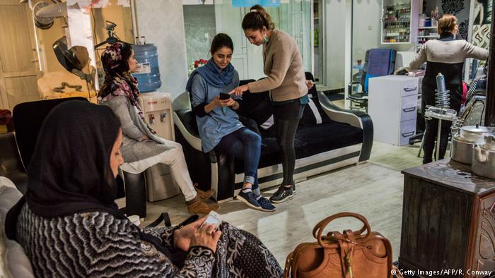 “The families who bring their girls here, they are happy that it’s just for girls, so… they know it’s very safe,” says Athena Hashemi, owner of the upmarket salon “Henna”.