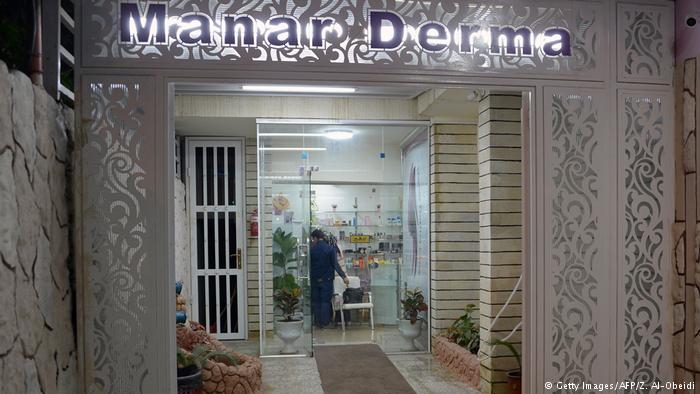 A picture shows the entrance of an aestethic clinic in the northern Iraqi city of Mosul on November 19, 2018.