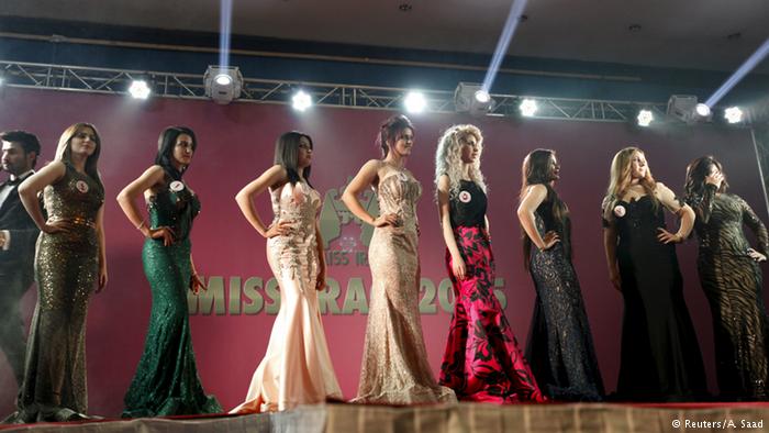Participants wait for judges to determine the winner of Miss Iraq during the final round of judging in Baghdad, December 19, 2015.
