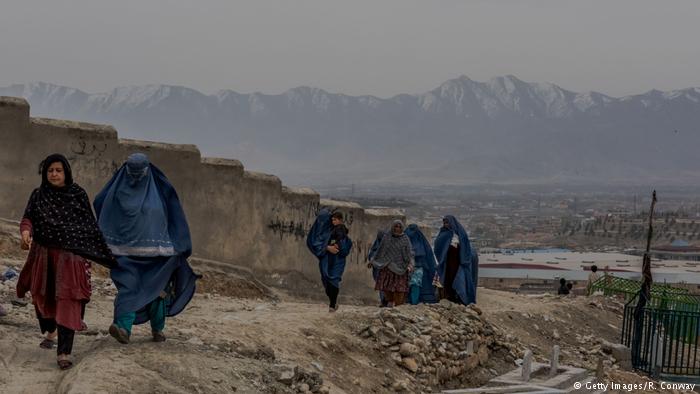 In this photograph taken on March 20, 2017, Afghan resident Anissa Azimi, 38, and the daughter of the founder of the Zanabad ‘Widows Hill’, Bibikoh, walks with other residents to her home in Zanabad on the outskirts of Kabul.