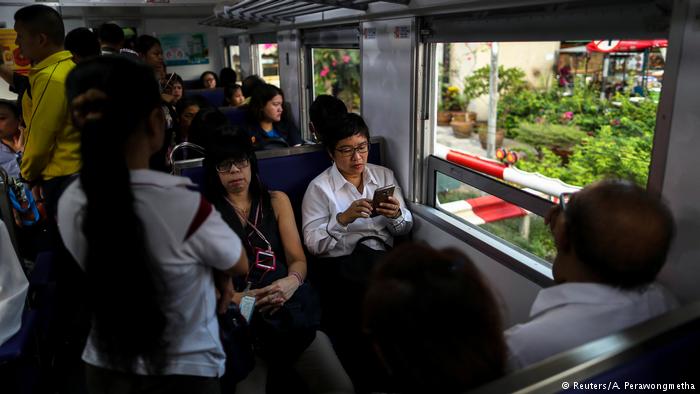 Boodsabann Chanthawong, 49, a businesswoman, works on her mobile phone as she rides on a train, weeks ahead of her ordination to be a novice monk in Bangkok, Thailand, November 22, 2018.