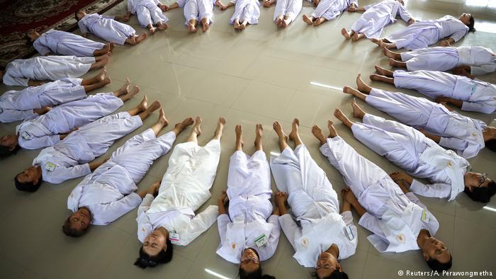 Thai women devotees attend an icebreaking session ahead of their ordination to be novice monks at the Songdhammakalyani monastery, Nakhon Pathom province, Thailand, December 3, 2018.