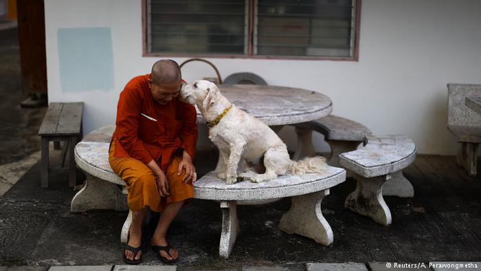 Dhammananda Bhikkhuni, 74, abbess of the Songdhammakalyani monastery, plays with her dog at the Songdhammakalyani monastery, Nakhon Pathom province, Thailand, December 3, 2018.