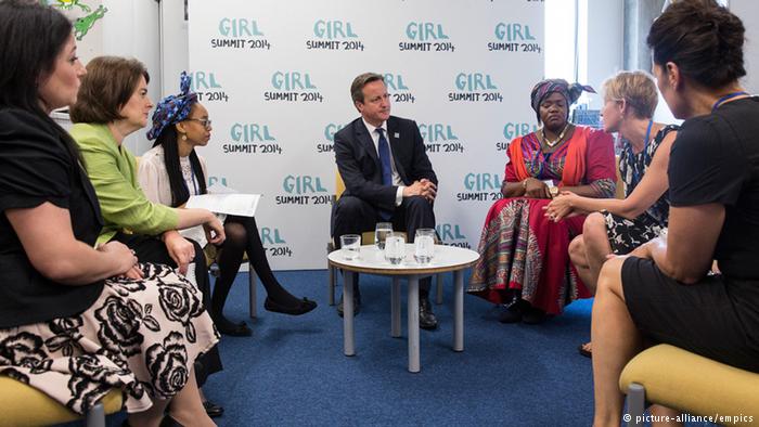 Girl Summit 2014. Prime Minister David Cameron meets campaigners and activists during the Girl Summit 2014 at Walworth Academy, London, where he announced parents who fail to prevent their daughter being subjected to female genital mutilation (FGM) will face prosecution under new legislation. Picture date: Tuesday July 22, 2014.
