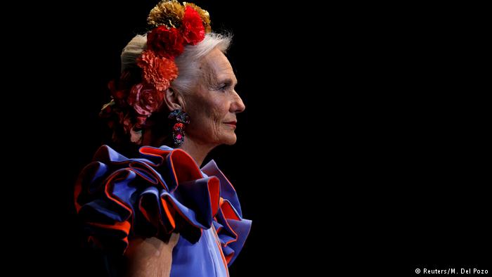 A model presents a creation by Ana Moron.
