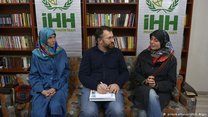 - Antonie Chrastecka (L) and Hana Humpalova (R) with IHH coordinator Izzet Sahin in Turkey after their release