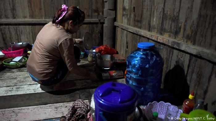 This photo taken on October 2, 2018 shows Nary (name has been changed), a Cambodian victim of forced marriage to a Chinese man, cooking at home in Phnom Penh.