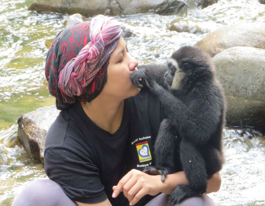 Mariani and Ellek, the first rescued gibbon that she ever took care of. © Mariani Ramli