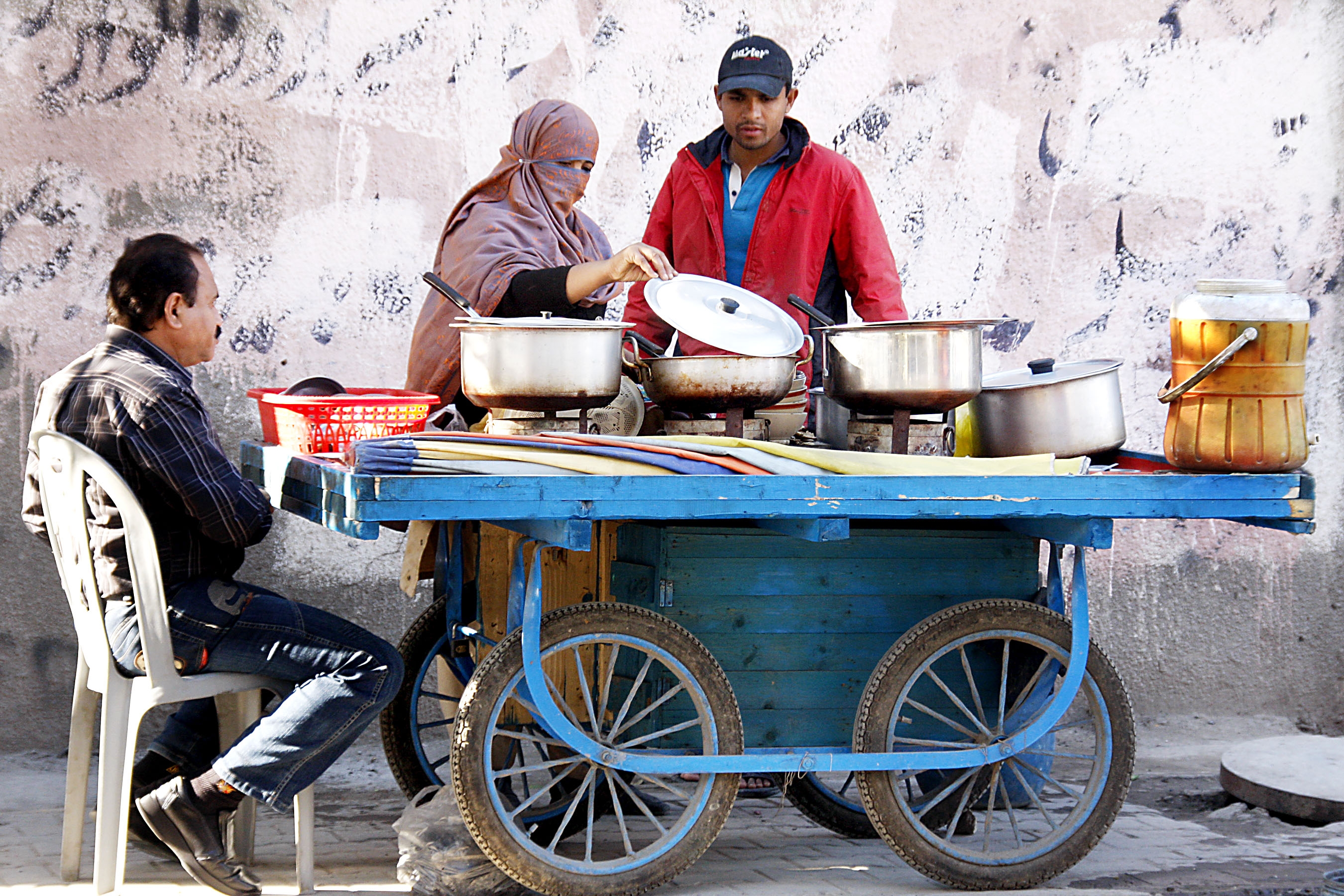 This woman has set up a food cart in front of a government office in Lahore- by covering her face she says people will respect her.